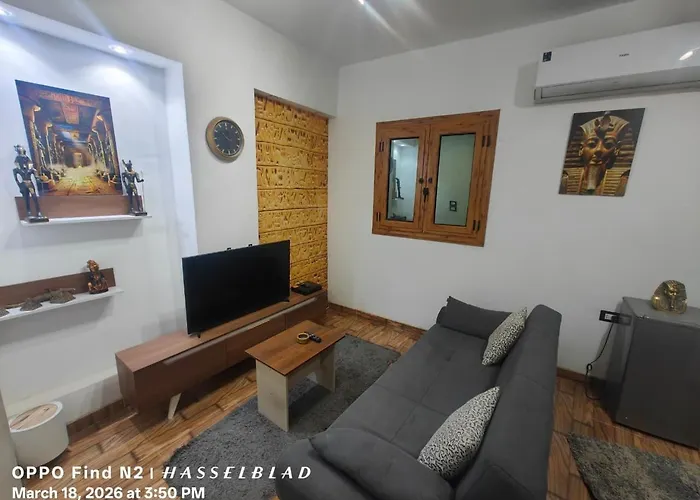 The 25 m² Gamgom Studio Cairo is nestled in an entertainment area of Cairo, around a 25-minute walk from the Great Sphinx of Giza and 4.3 km from the Layer Pyramid. Wi-Fi and a free private car park are also available at this apartment.